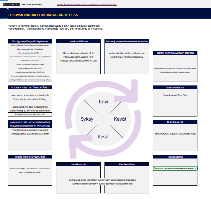 Lokova rf:s mål är att stöda er i er viktiga roll där ni är i kontakt med dagis, förskolor och skolor för att stöda ert barns bästa. Inkommande läsår ordnar vi i samarbete med SSO en insändartävling, samt föreläsningar med stöd av Finlands föräldraförbund och Gesellius stiftelse. Varmt välkomna med att delta på våra evenemang..